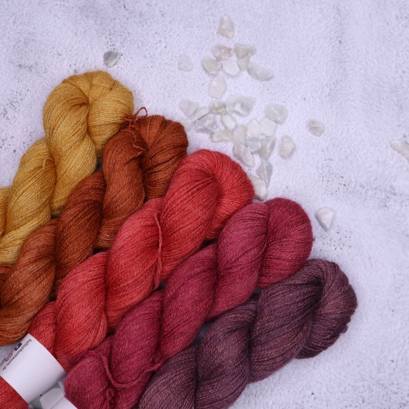 Handgefärbte Garne sind immer Unikate, auch innerhalb einer Charge können die Farben variieren.